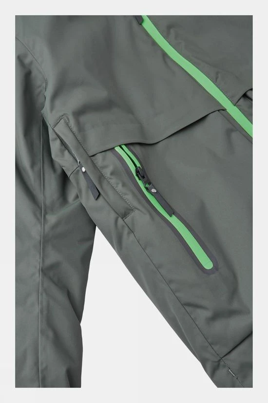 The Tirro is equipped with adjustable cuffs, an adjustable hem, and a snow lock at the waist help lock out chills and moisture. The powder skirt can be attached to a special spot in the lining when not in use. The detachable and adjustable hood is safe because it comes off easily if caught on something. It also has a neck-protecting wind flap and visor. The piece is finished with a number of pockets for storing essentials, while smart ventilation zips air perspiration. It can also be tumble-dried ready for hitting the slopes all over again.